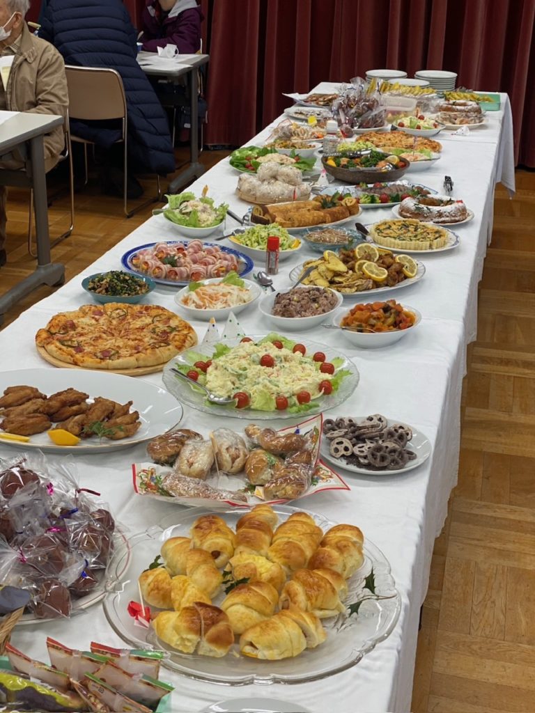 クリスマスの本当の意味に午後は愛賛会を開催し、奉仕部がご準備くださったおでんやサラダ、おかずやケーキ、またそれぞれに持ち寄ったお食事でとても豊かな食卓を囲み愛餐のひとときを過ごしました。クリスマスの讃美歌を歌ったりクリスマスにちなんだクイズで盛り上がりました。長年教会の礼拝に連なってこられた教会員のお証を聞き、クリスマスの喜びを分かち合えたことも感謝です。